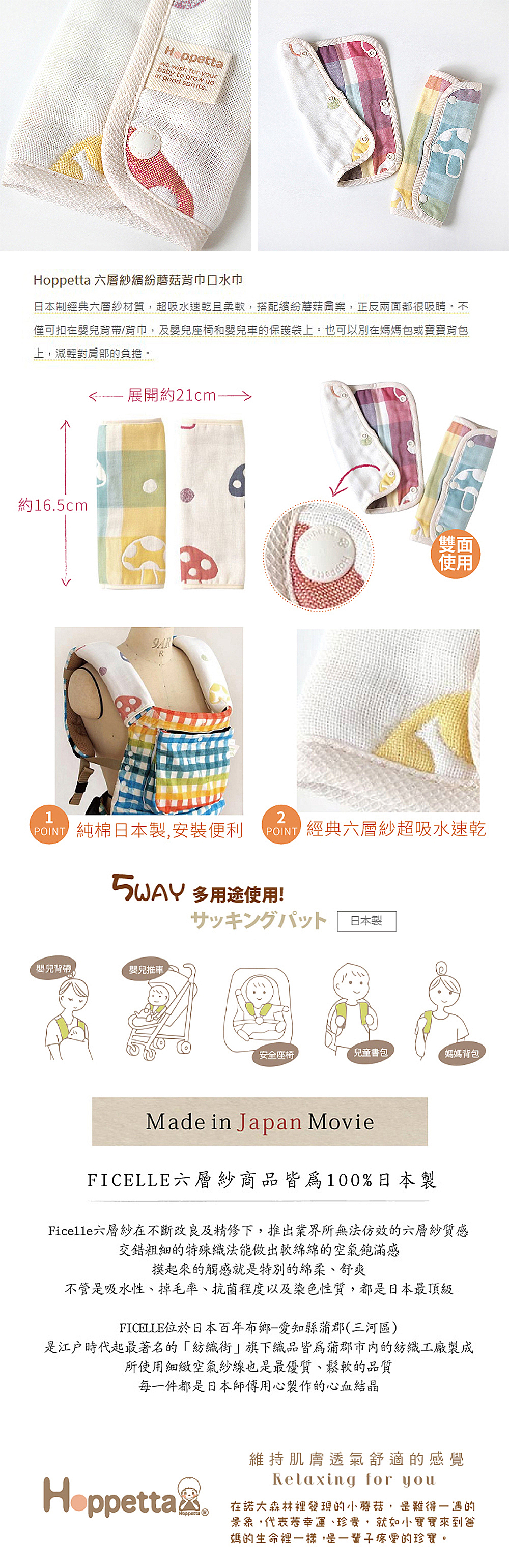 商品:六層紗繽紛蘑菇背巾口水巾
