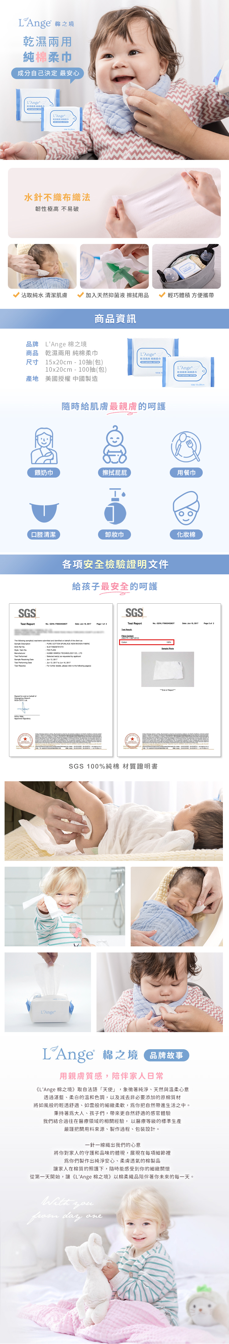 |L'Ange 棉之境 乾濕兩用 純棉柔巾10抽|