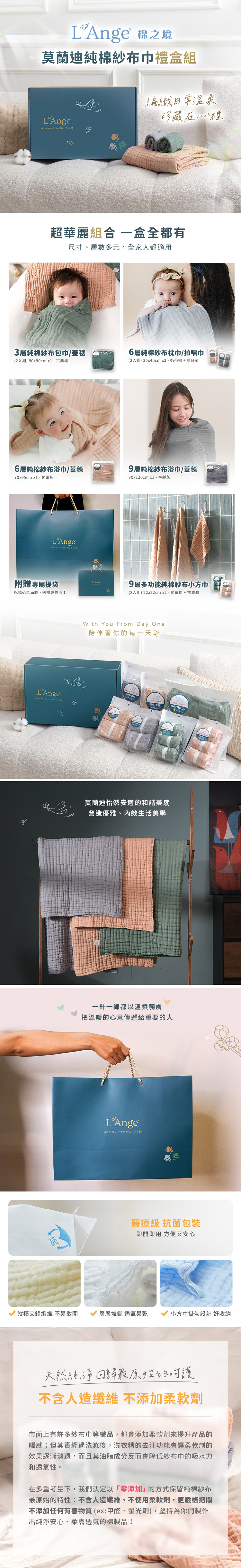|L'Ange 棉之境 莫蘭迪純綿紗布禮盒組|