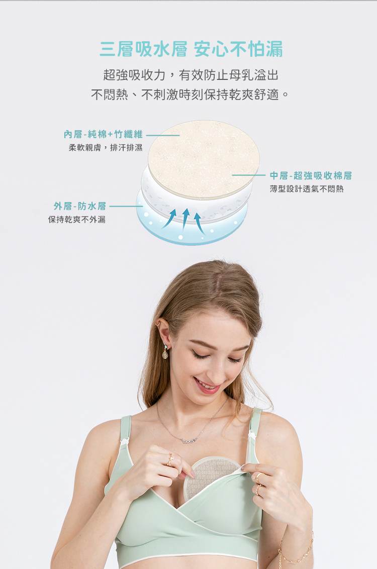 超強吸水力,有效防止母乳溢出,時刻保持乾爽舒適。