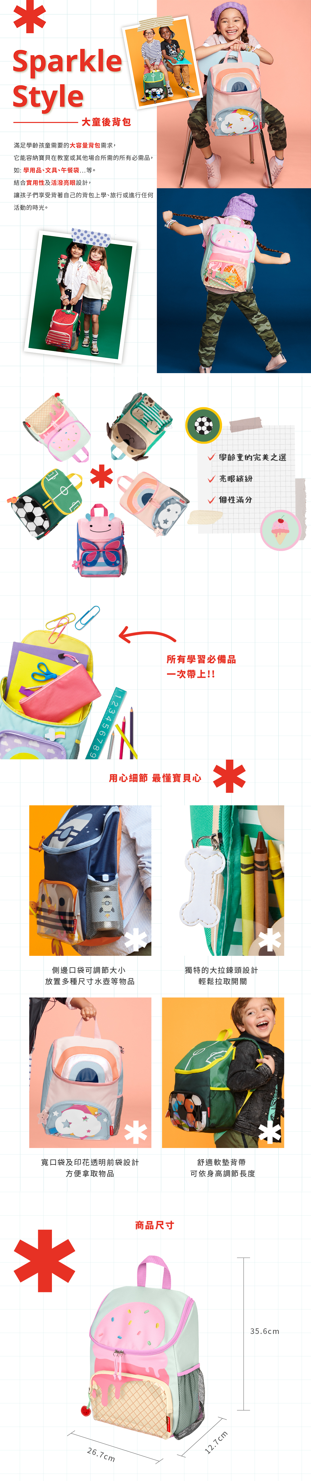-易於打開的寬口袋及印花透明前袋,方便拿取
